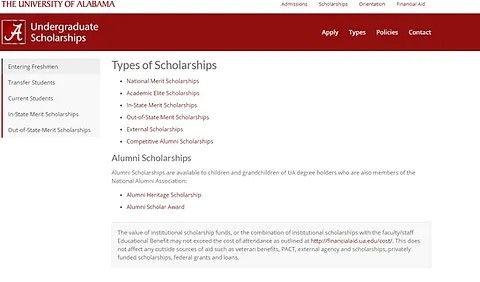 In addition to Tide in Texas and Merit Scholarships, there are scholarships available for children and grandchildren of UA degree holders.